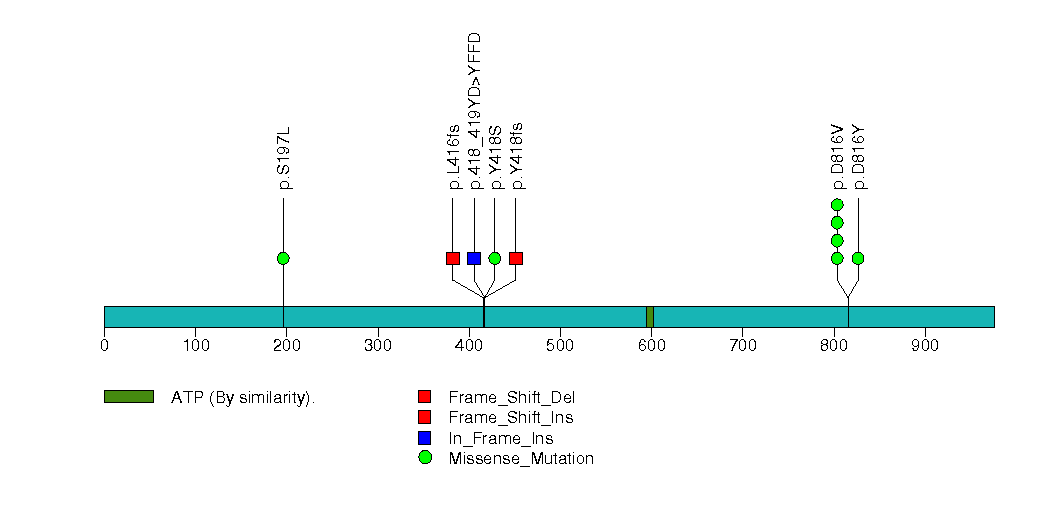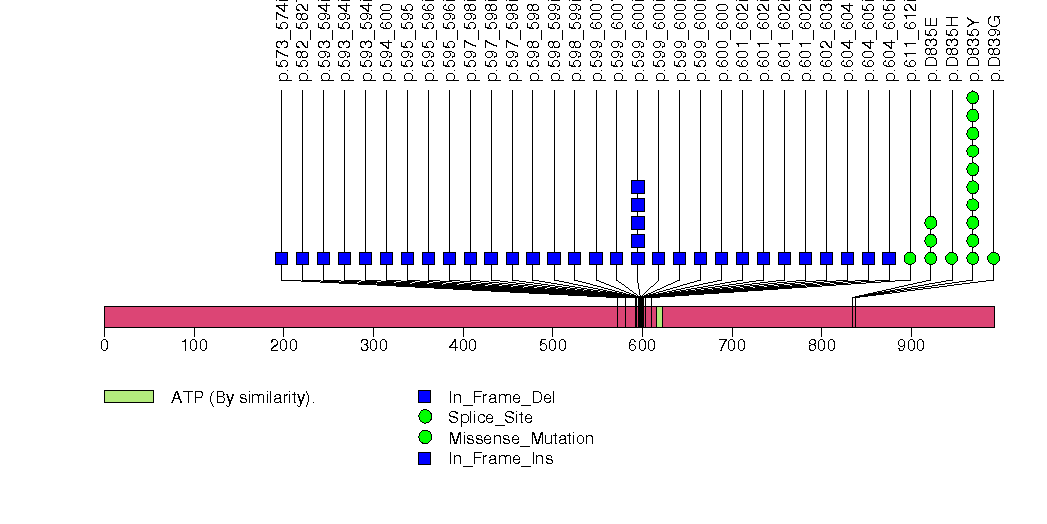 Figure S16. This figure depicts the distribution of mutations and mutation types across the KIT significant gene.