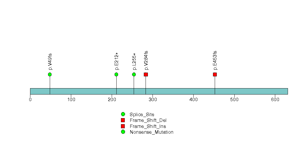 Figure S14. This figure depicts the distribution of mutations and mutation types across the PHF6 significant gene.