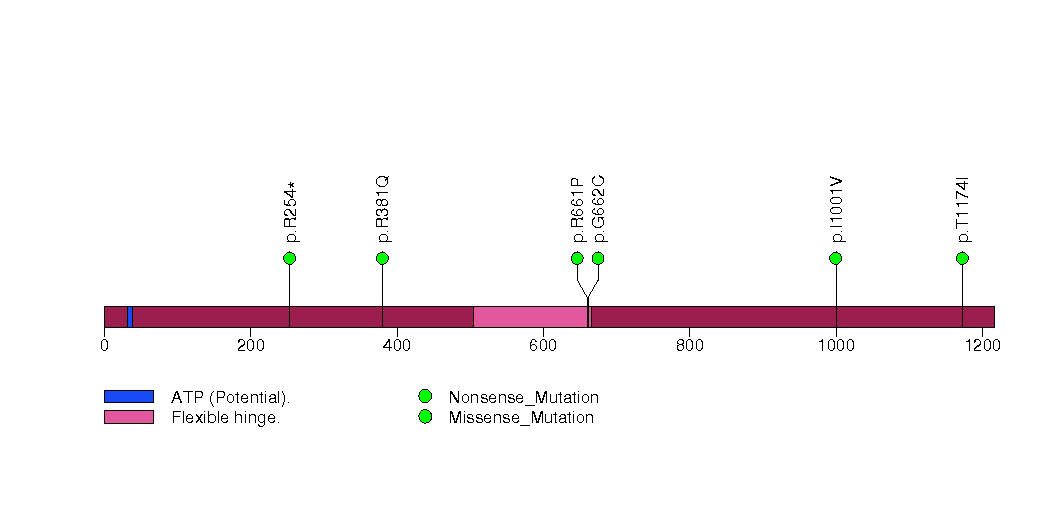 Figure S1. This figure depicts the distribution of mutations and mutation types across the FLT3 significant gene.