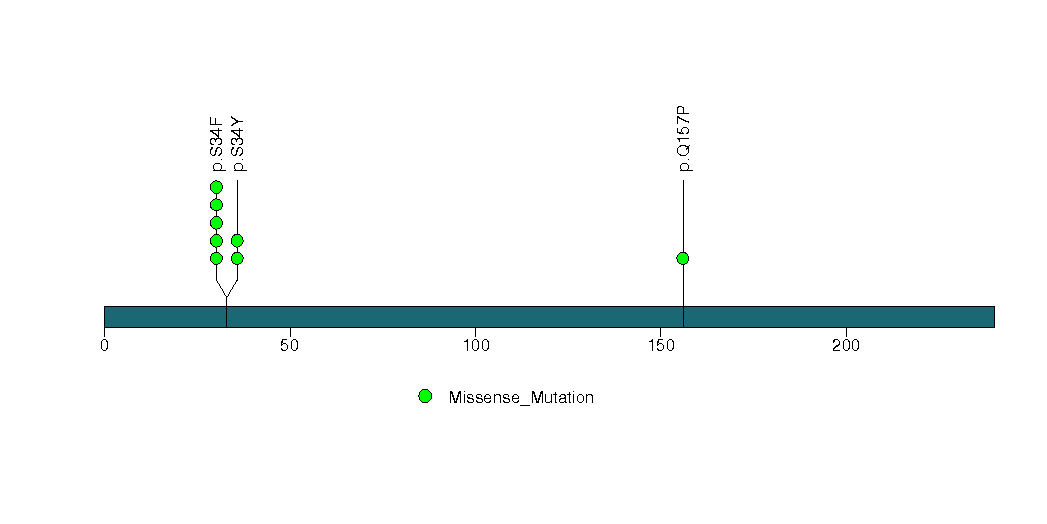 Figure S5. This figure depicts the distribution of mutations and mutation types across the IDH1 significant gene.