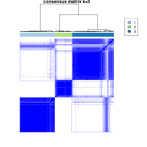 Figure 4. Get High-res Image The consensus matrix after clustering shows 3 clusters with limited overlap between clusters.
