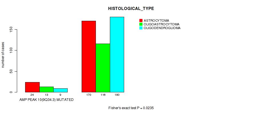 amp_9q34.3 cnv correlated to 'RADIATION_THERAPY' and 'HISTOLOGICAL_TYPE'.