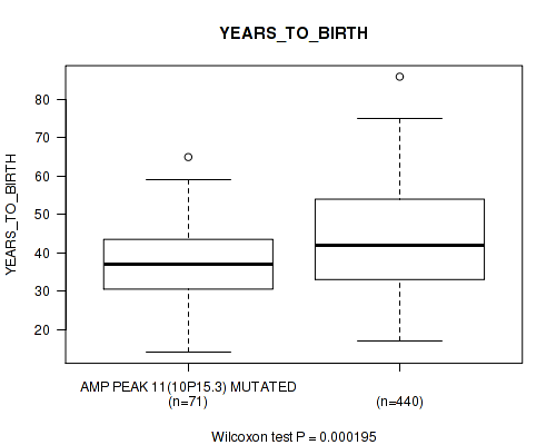 amp_10p15.3 cnv correlated to 'YEARS_TO_BIRTH', 'RADIATION_THERAPY', and 'HISTOLOGICAL_TYPE'.