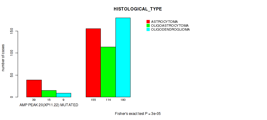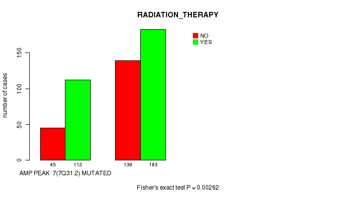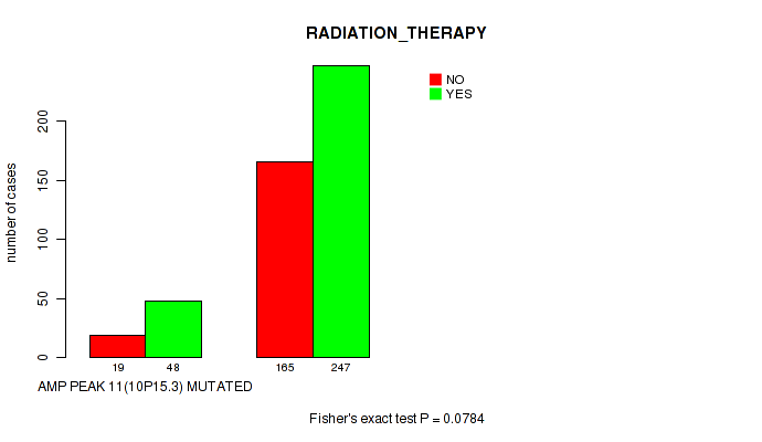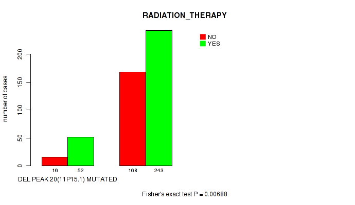 amp_xp11.22 cnv correlated to 'RADIATION_THERAPY' and 'HISTOLOGICAL_TYPE'.