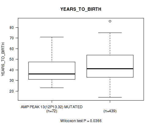 amp_12p13.32 cnv correlated to 'YEARS_TO_BIRTH' and 'RADIATION_THERAPY'.