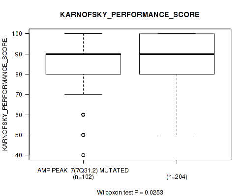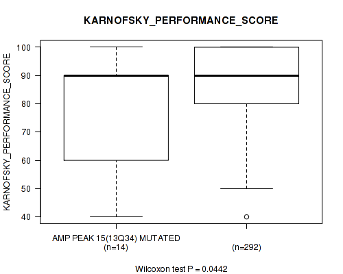amp_13q34 cnv correlated to 'KARNOFSKY_PERFORMANCE_SCORE'.