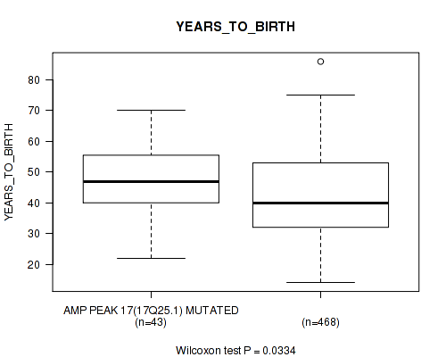 amp_17q25.1 cnv correlated to 'Time to Death' and 'YEARS_TO_BIRTH'.