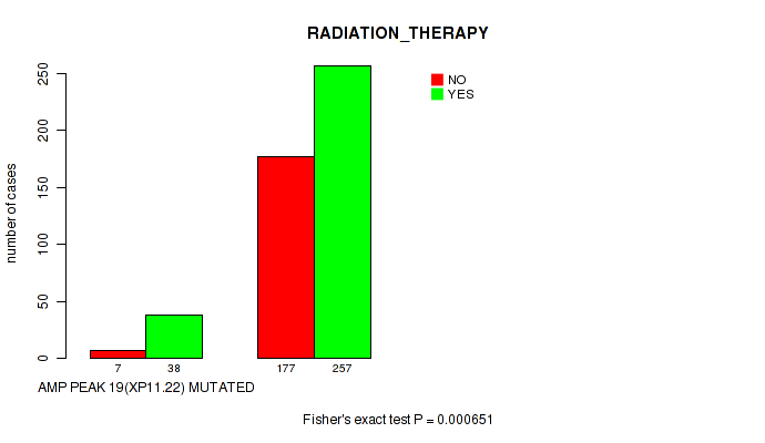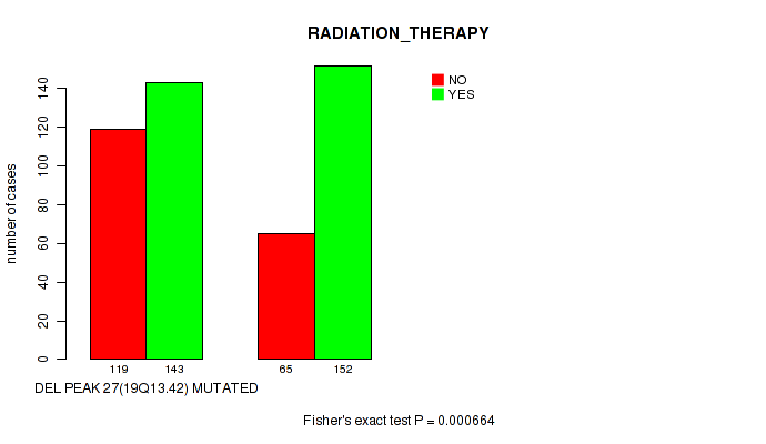 Figure S130. Get High-res Image Gene #47: 'del_19q13.42' versus Clinical Feature #4: 'RADIATION_THERAPY'
