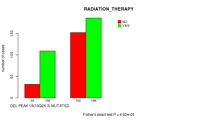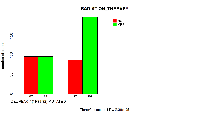 del_5p15.33 cnv correlated to 'RADIATION_THERAPY' and 'HISTOLOGICAL_TYPE'.