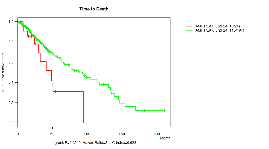 amp_2p24.3 cnv correlated to 'Time to Death'.