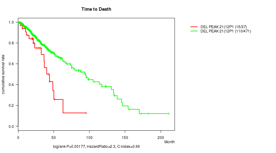 del_12p13.1 cnv correlated to 'Time to Death'.