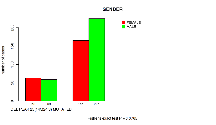 Figure S127. Get High-res Image Gene #45: 'del_14q24.3' versus Clinical Feature #3: 'GENDER'