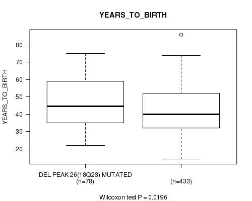 del_18q23 cnv correlated to 'YEARS_TO_BIRTH'.