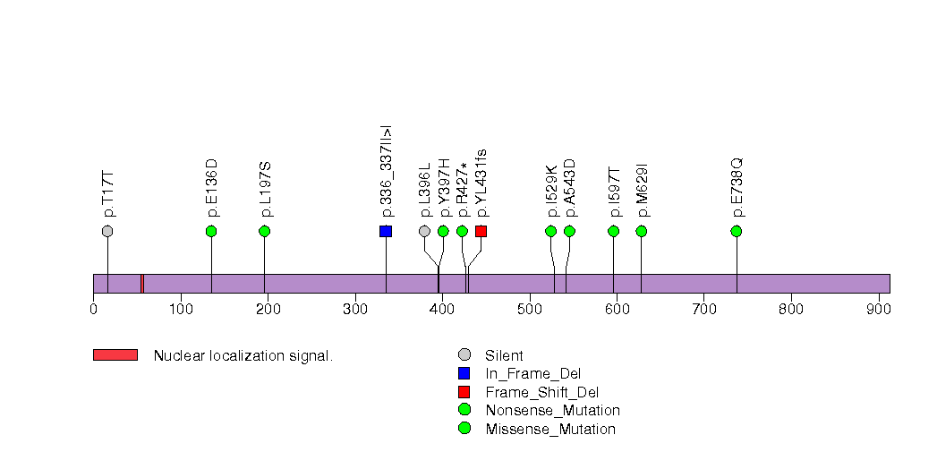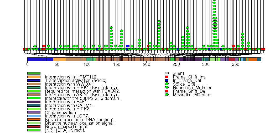 Figure S6. This figure depicts the distribution of mutations and mutation types across the TP53 significant gene.