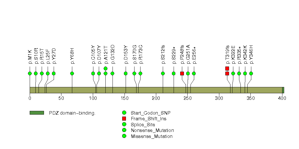 Figure S9. This figure depicts the distribution of mutations and mutation types across the PTEN significant gene.