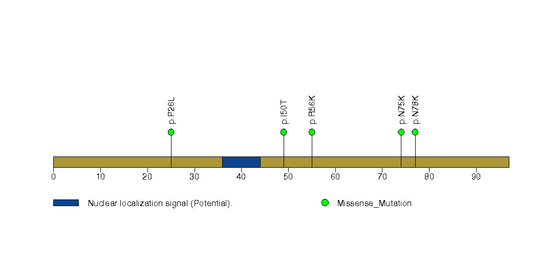 Figure S27. This figure depicts the distribution of mutations and mutation types across the NDUFAF2 significant gene.