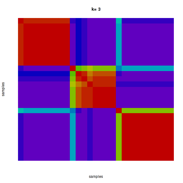Figure 4. Get High-res Image The consensus matrix after clustering shows 3 clusters with limited overlap between clusters.