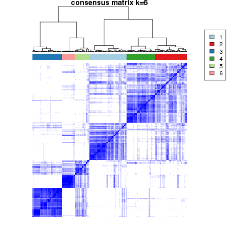 Figure 4. Get High-res Image The consensus matrix after clustering shows 6 clusters with limited overlap between clusters.
