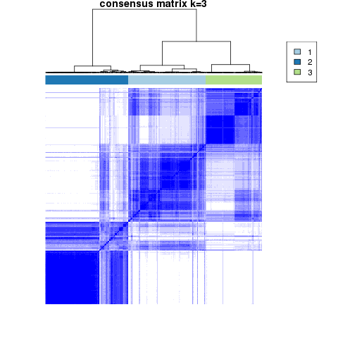 Figure 4. Get High-res Image The consensus matrix after clustering shows 3 clusters with limited overlap between clusters.
