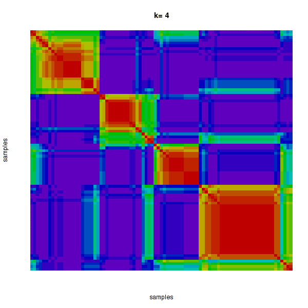 Figure 4. Get High-res Image The consensus matrix after clustering shows 4 clusters with limited overlap between clusters.