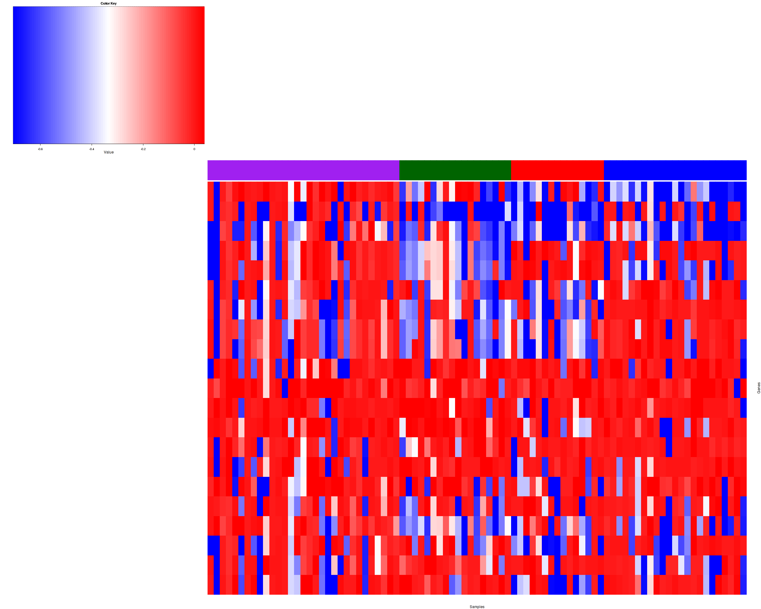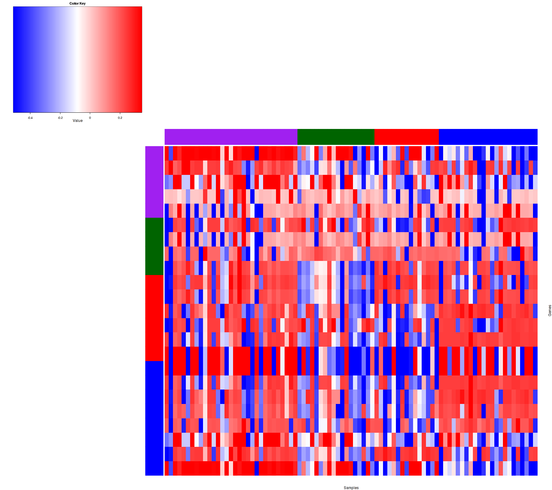 Figure 1. Get High-res Image Samples were separated into 4 clusters. Shown are 87 samples and 23 marker focal events. The color bar of the row indicates the marker focal events for the corresponding cluster.