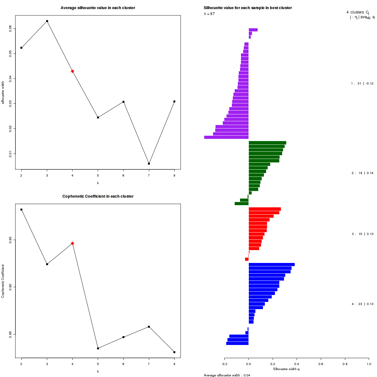 Table 1. Get Full Table List of samples with 4 subtypes and silhouette width.