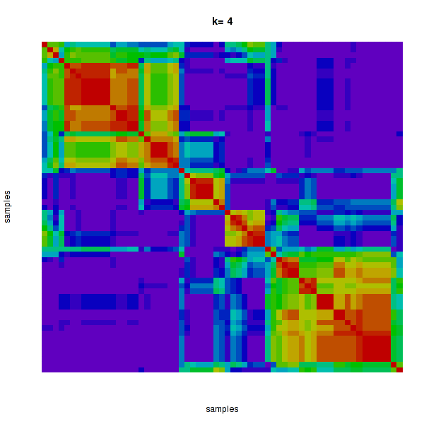 Figure 4. Get High-res Image The consensus matrix after clustering shows 4 clusters with limited overlap between clusters.