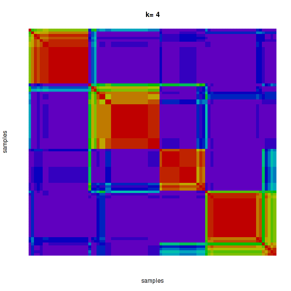 Figure 4. Get High-res Image The consensus matrix after clustering shows 4 clusters with limited overlap between clusters.