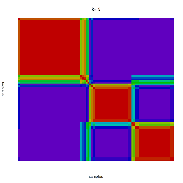 Figure 4. Get High-res Image The consensus matrix after clustering shows 3 clusters with limited overlap between clusters.