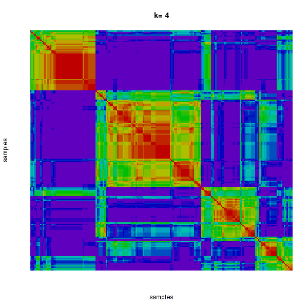 Figure 4. Get High-res Image The consensus matrix after clustering shows 4 clusters with limited overlap between clusters.