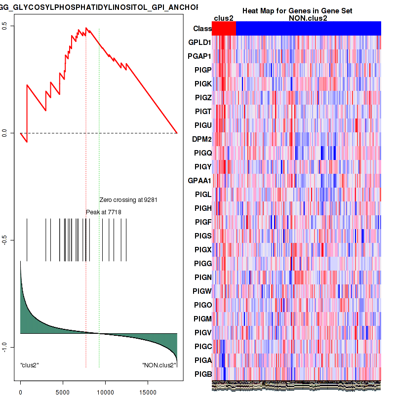 Table S2. Get Full Table This table shows a Running Enrichment Score (RES) of each gene in this pathway, that is, the enrichment score at this point in the ranked list of genes. All genes are ranked by Signal-to-Noise (S2N), a measure of similarity as default and are used to obtain ES matrix of all genes. In this way, GSEA tool uses expression pattern of not only overlapped genes but also not-overlapped genes to produce ES matrix.