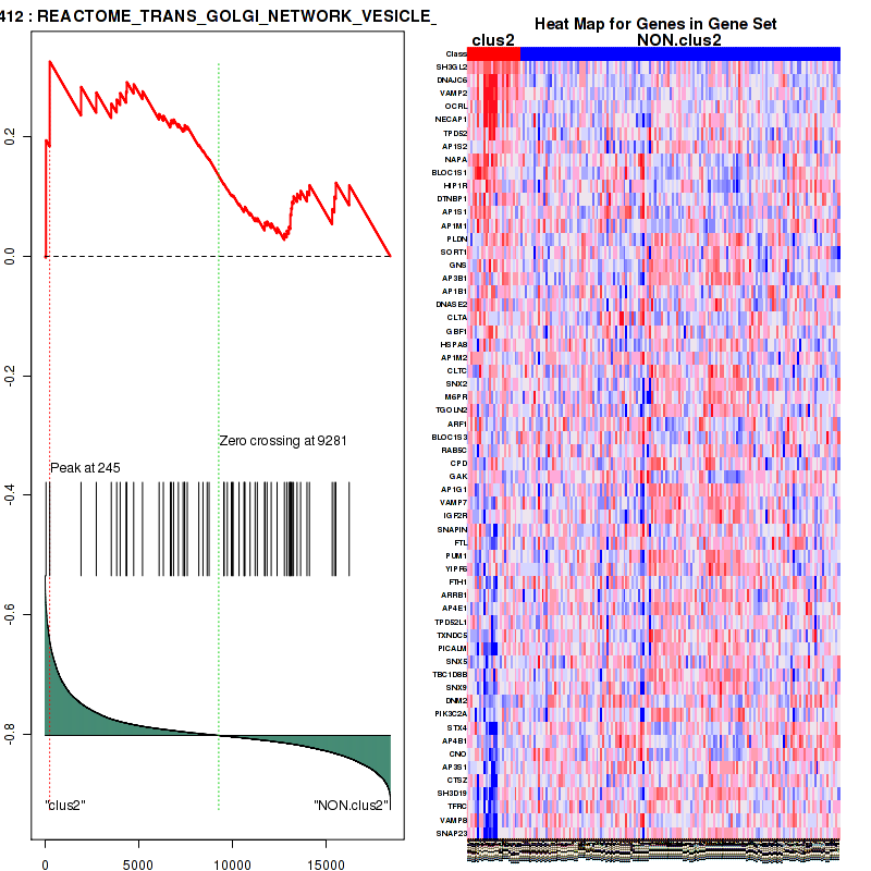 Table S50. Get Full Table This table shows a Running Enrichment Score (RES) of each gene in this pathway, that is, the enrichment score at this point in the ranked list of genes. All genes are ranked by Signal-to-Noise (S2N), a measure of similarity as default and are used to obtain ES matrix of all genes. In this way, GSEA tool uses expression pattern of not only overlapped genes but also not-overlapped genes to produce ES matrix.