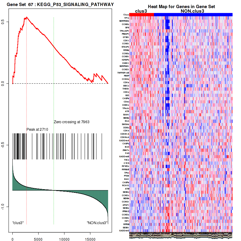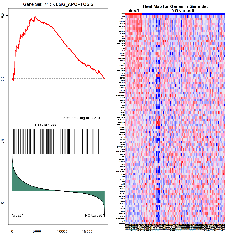 Figure S99. Get High-res Image This plot shows mRNAseq_cNMF expression data heatmap (on the left) a RunningEnrichmentScore(RES) plot (on the top right) and a Signal2Noise(S2N) plot (on the bottom right) of genes in the pathway: KEGG APOPTOSIS.