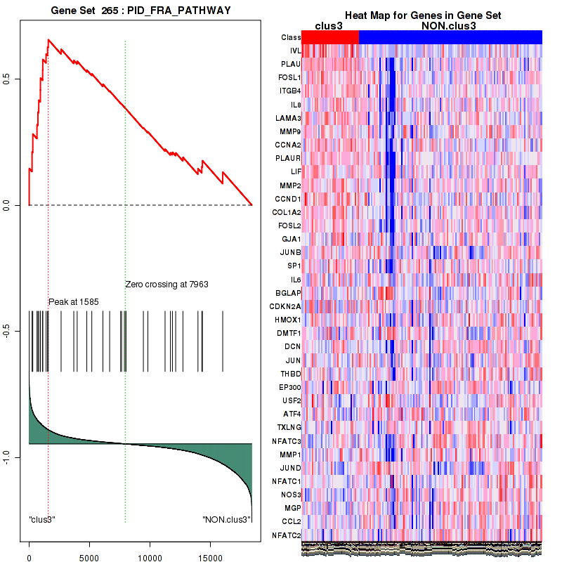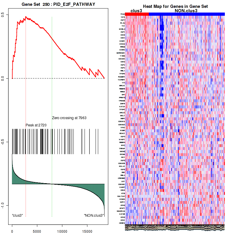 Table 3. Get Full Table This table shows top 10 pathways which are significantly enriched in cluster clus1. It displays only significant gene sets satisfying nom.p.val.threshold (-1), fwer.p.val.threshold (-1) , fdr.q.val.threshold (0.25) and the default table is sorted by Normalized Enrichment Score (NES). Further details on NES statistics, please visit The Broad GSEA website.