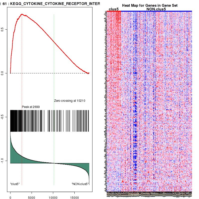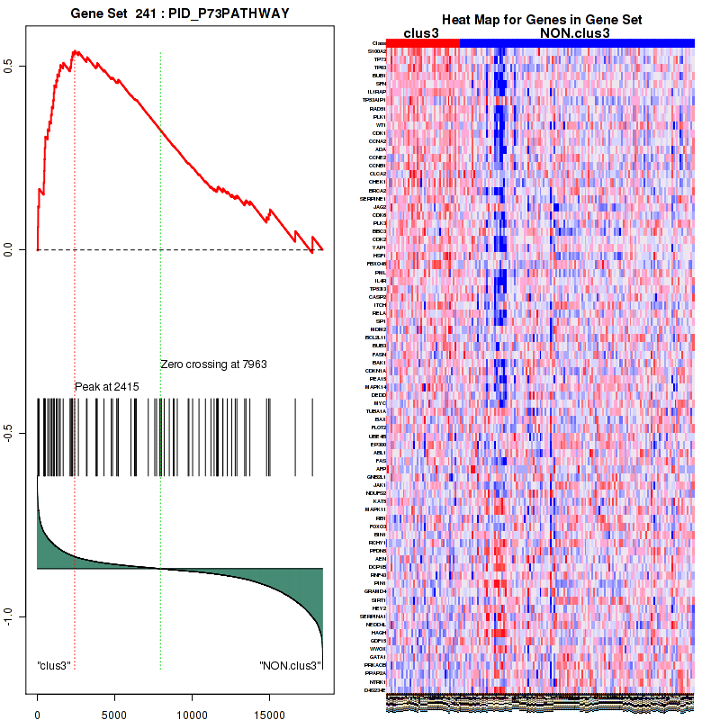 Table S1. Get Full Table This table shows a Running Enrichment Score (RES) of each gene in this pathway, that is, the enrichment score at this point in the ranked list of genes. All genes are ranked by Signal-to-Noise (S2N), a measure of similarity as default and are used to obtain ES matrix of all genes. In this way, GSEA tool uses expression pattern of not only overlapped genes but also not-overlapped genes to produce ES matrix.