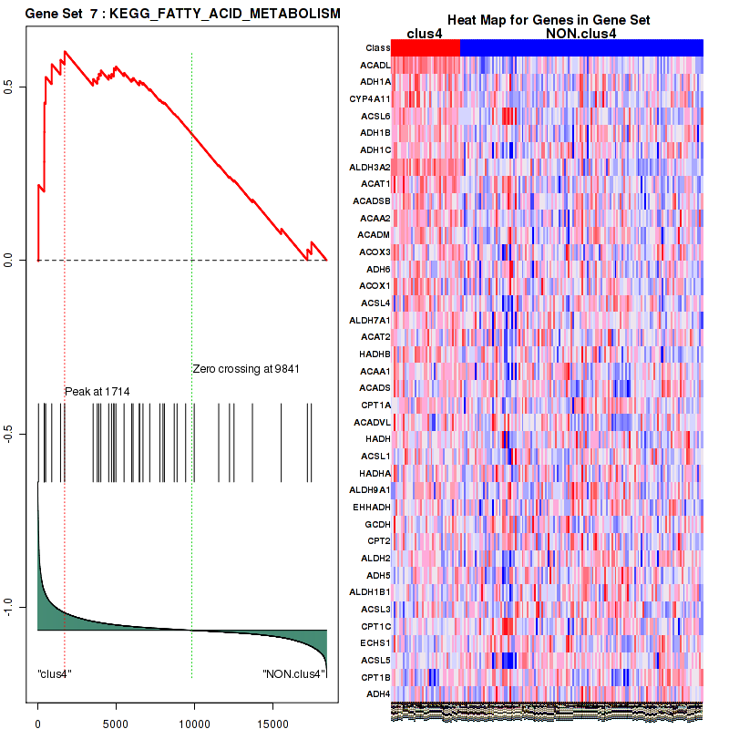 Top enriched gene sets are KEGG FATTY ACID METABOLISM, KEGG SELENOAMINO ACID METABOLISM, KEGG GLUTATHIONE METABOLISM, KEGG GLYCEROLIPID METABOLISM, KEGG PROPANOATE METABOLISM, KEGG ENDOCYTOSIS, SIG PIP3 SIGNALING IN CARDIAC MYOCTES, SIG CHEMOTAXIS, SIG REGULATION OF THE ACTIN CYTOSKELETON BY RHO GTPASES, PID INSULIN PATHWAY