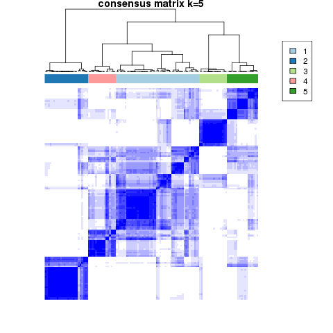 Figure 4. Get High-res Image The consensus matrix after clustering shows 5 clusters with limited overlap between clusters.