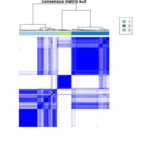 Figure 4. Get High-res Image The consensus matrix after clustering shows 3 clusters with limited overlap between clusters.