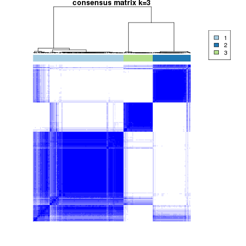 Figure 4. Get High-res Image The consensus matrix after clustering shows 3 clusters with limited overlap between clusters.