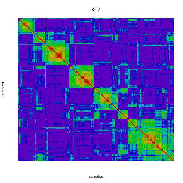 Figure 4. Get High-res Image The consensus matrix after clustering shows 7 clusters with limited overlap between clusters.