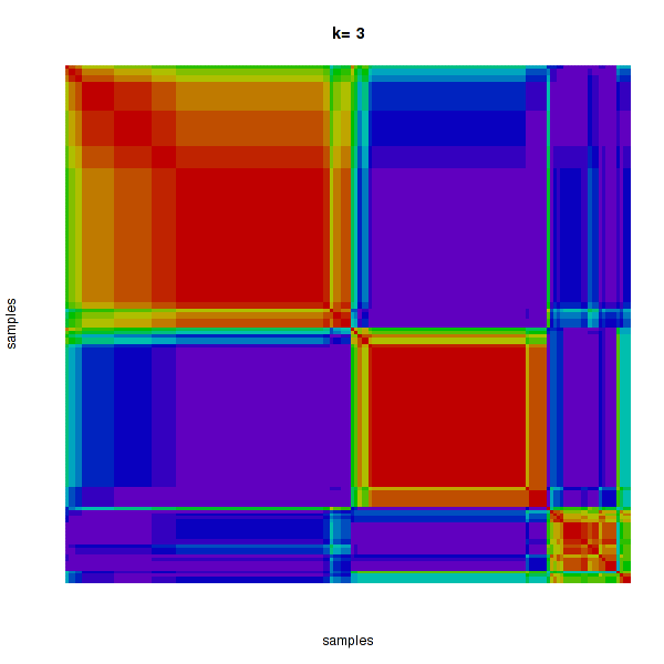 Figure 4. Get High-res Image The consensus matrix after clustering shows 3 clusters with limited overlap between clusters.