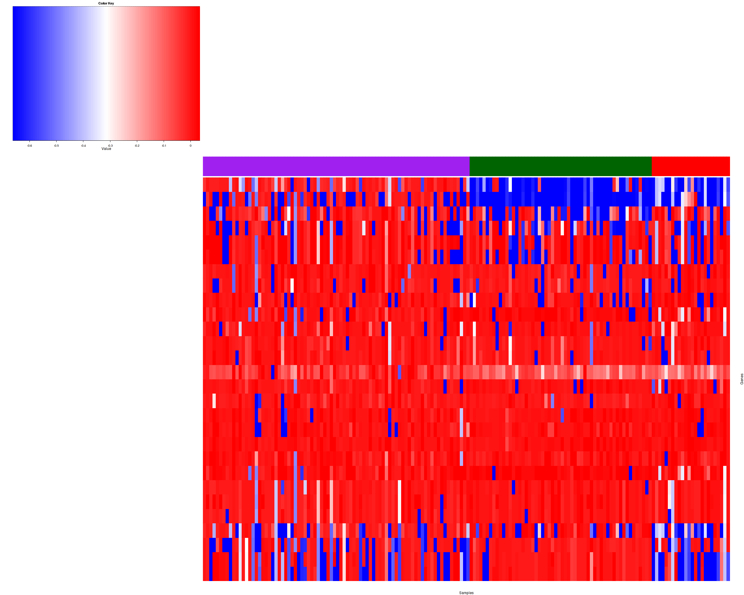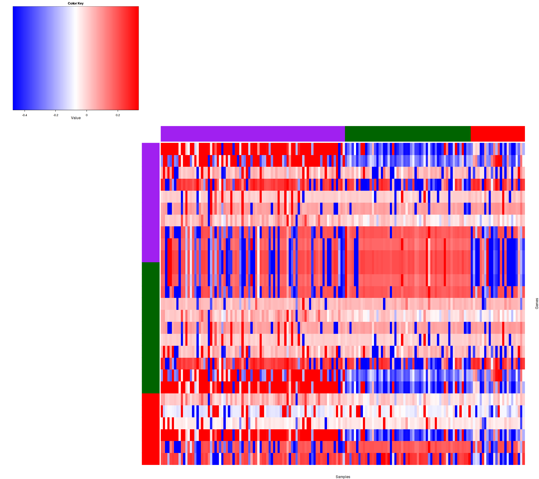 Figure 1. Get High-res Image Samples were separated into 3 clusters. Shown are 162 samples and 27 marker focal events. The color bar of the row indicates the marker focal events for the corresponding cluster.