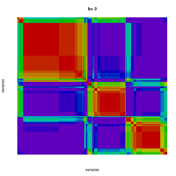 Figure 4. Get High-res Image The consensus matrix after clustering shows 3 clusters with limited overlap between clusters.
