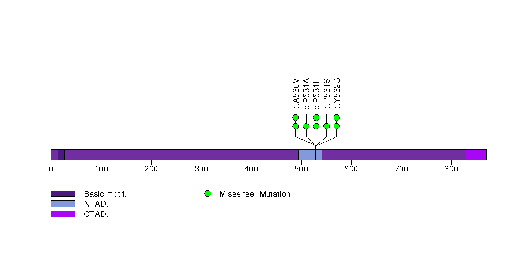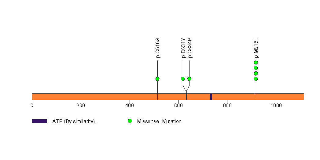 Figure S5. This figure depicts the distribution of mutations and mutation types across the RET significant gene.