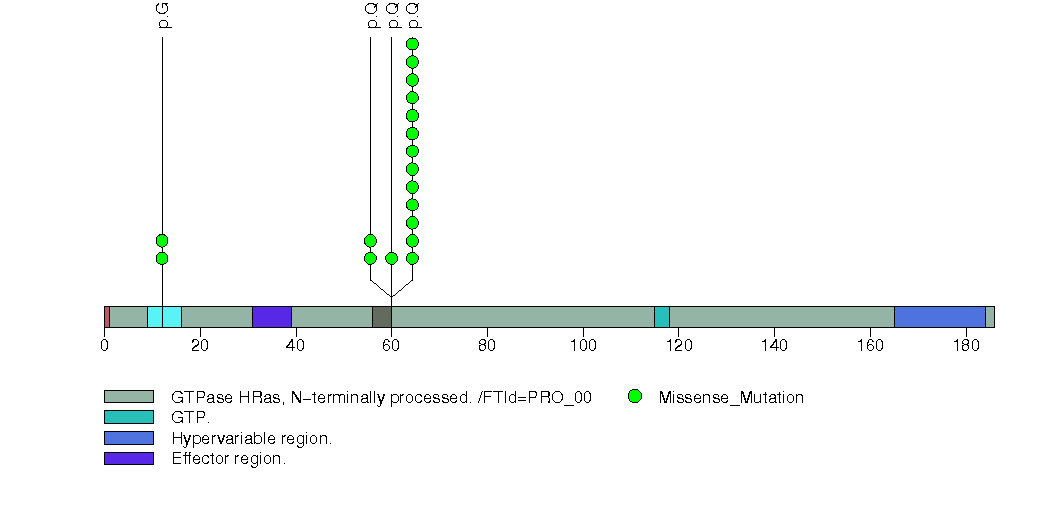 Figure S1. This figure depicts the distribution of mutations and mutation types across the HRAS significant gene.