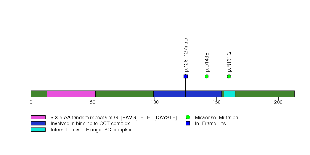 Figure S6. This figure depicts the distribution of mutations and mutation types across the VHL significant gene.