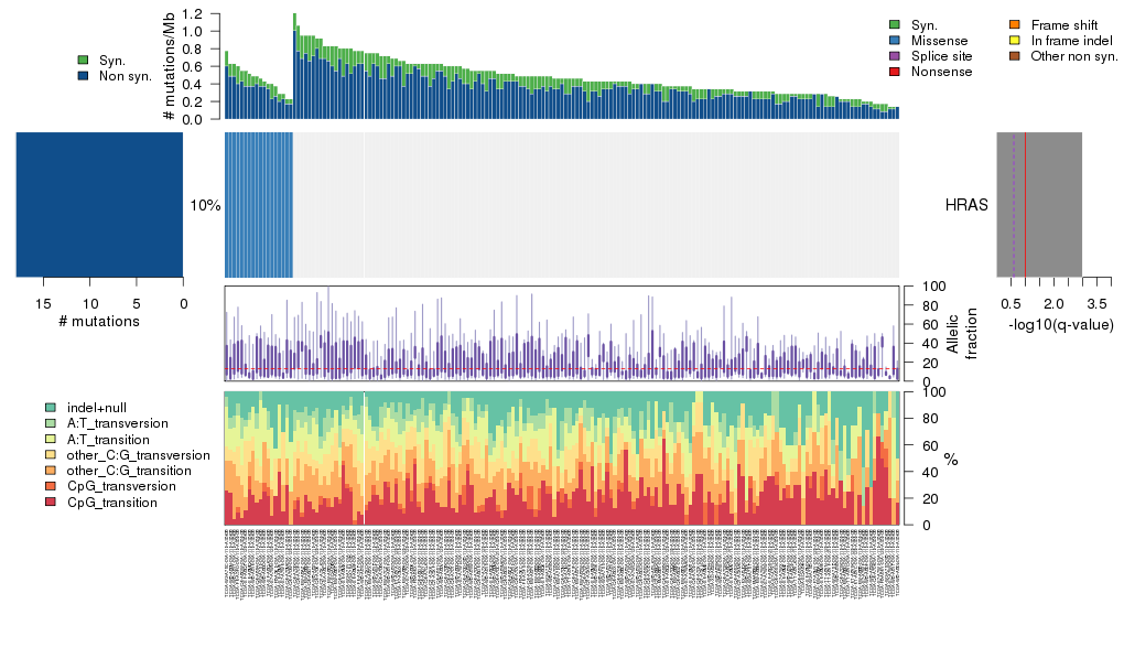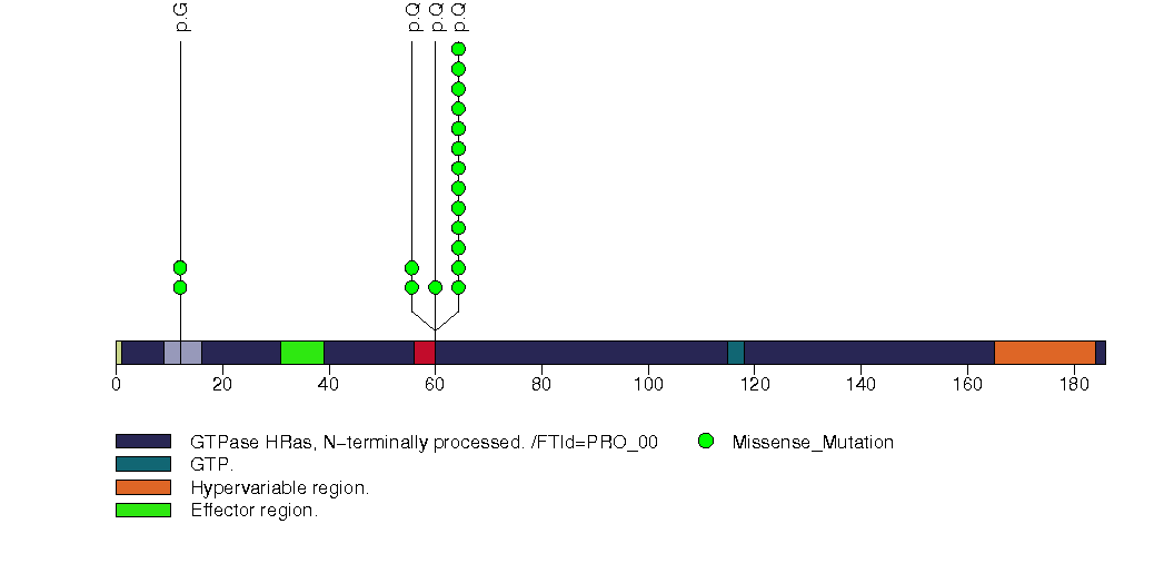 Figure S1. This figure depicts the distribution of mutations and mutation types across the HRAS significant gene.