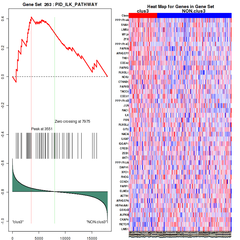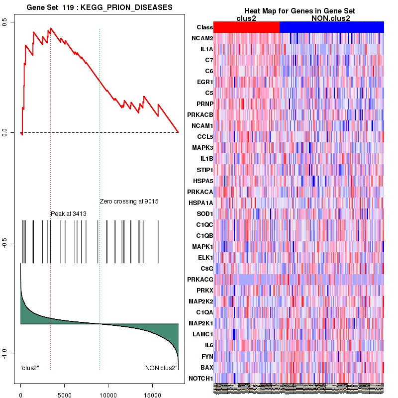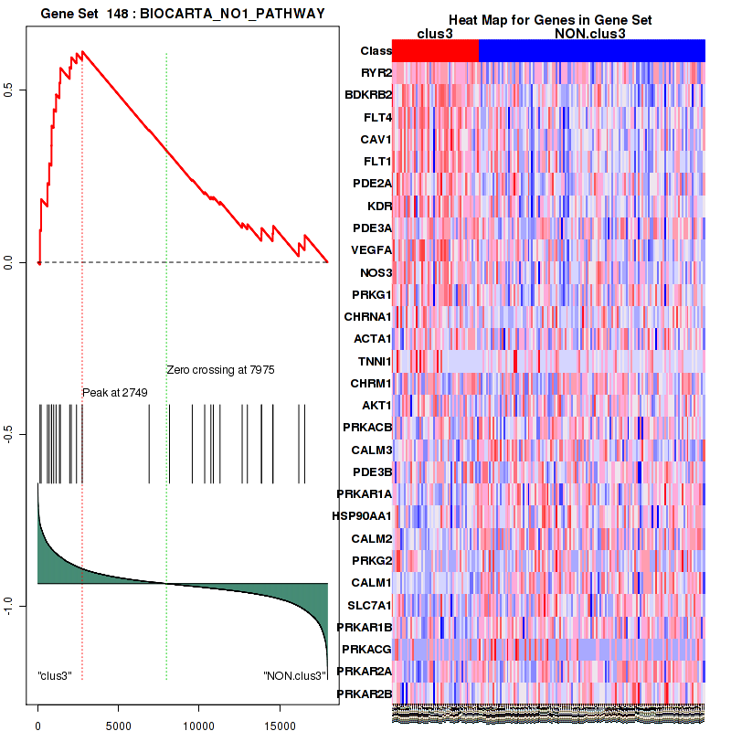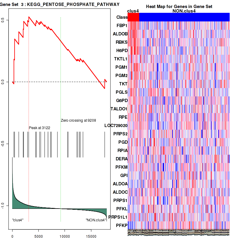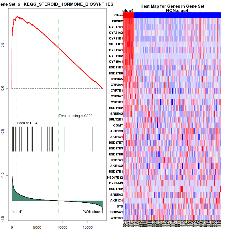 Table S1. Get Full Table This table shows a Running Enrichment Score (RES) of each gene in this pathway, that is, the enrichment score at this point in the ranked list of genes. All genes are ranked by Signal-to-Noise (S2N), a measure of similarity as default and are used to obtain ES matrix of all genes. In this way, GSEA tool uses expression pattern of not only overlapped genes but also not-overlapped genes to produce ES matrix.