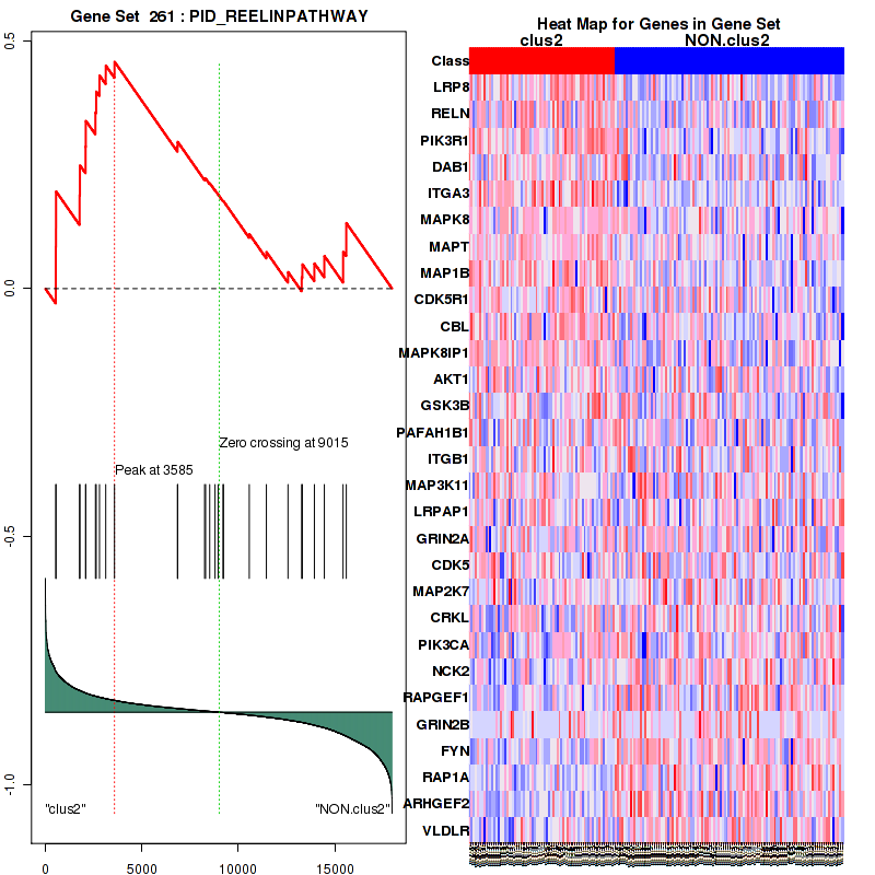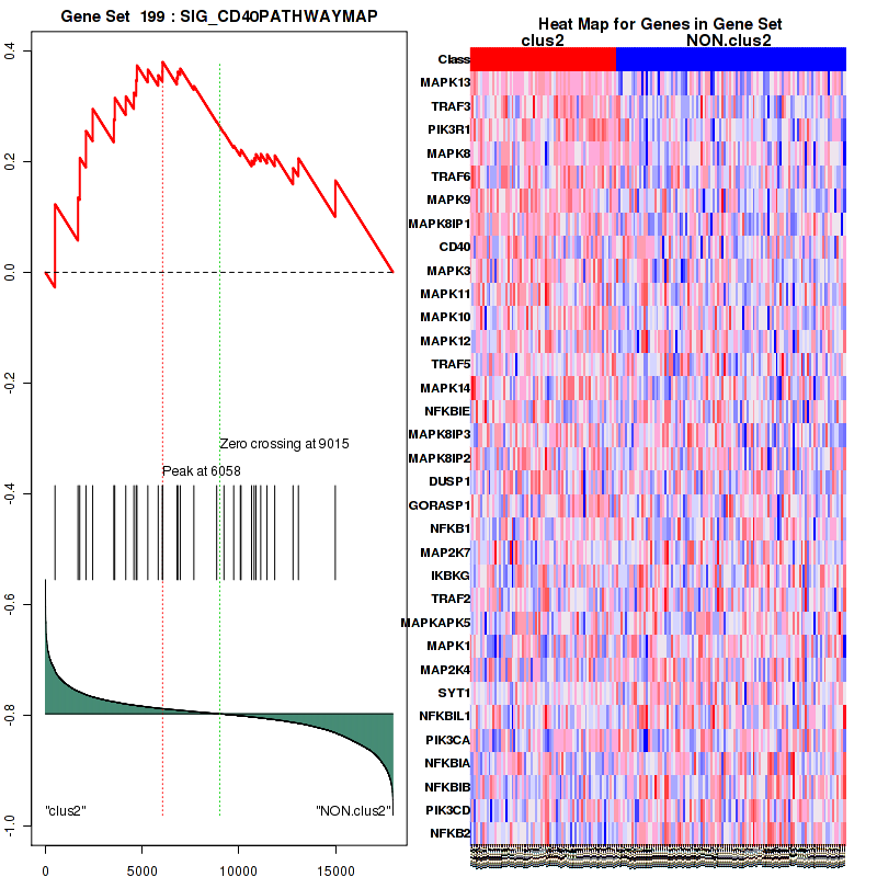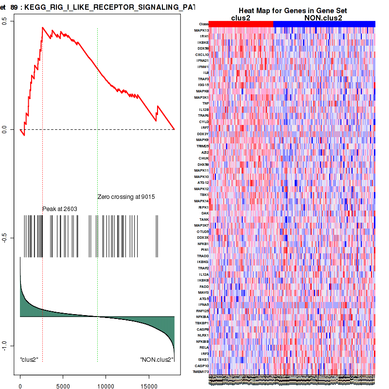 Table S2. Get Full Table This table shows a Running Enrichment Score (RES) of each gene in this pathway, that is, the enrichment score at this point in the ranked list of genes. All genes are ranked by Signal-to-Noise (S2N), a measure of similarity as default and are used to obtain ES matrix of all genes. In this way, GSEA tool uses expression pattern of not only overlapped genes but also not-overlapped genes to produce ES matrix.