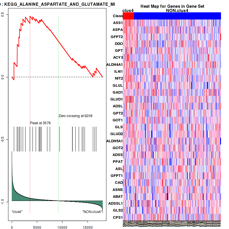 For the expression subtypes of 17994 genes in 180 samples, GSEA found enriched gene sets in each cluster using 179 gene sets in MSigDB canonical pathways. Top enriched gene sets are listed as below.